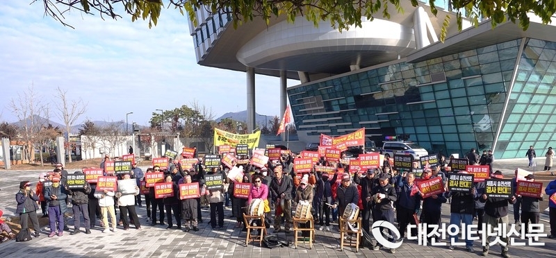 세종시청  앞 대전‧세종‧충남 송전선로 반대 집회. [사진-대전인터넷신문]