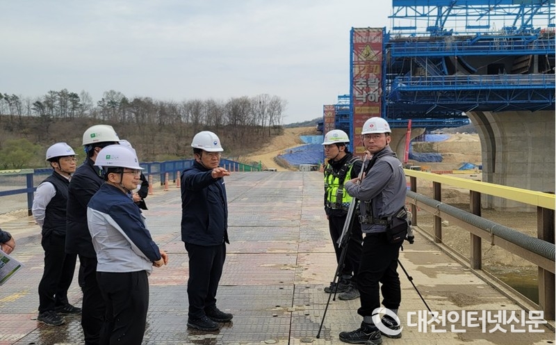 최형욱 행복청 차장(오른쪽 세 번째)이 행정중심복합도시 건설 현장을 점검하며 현장중심 소통을 이어가고 있다. [사진-행복청]
