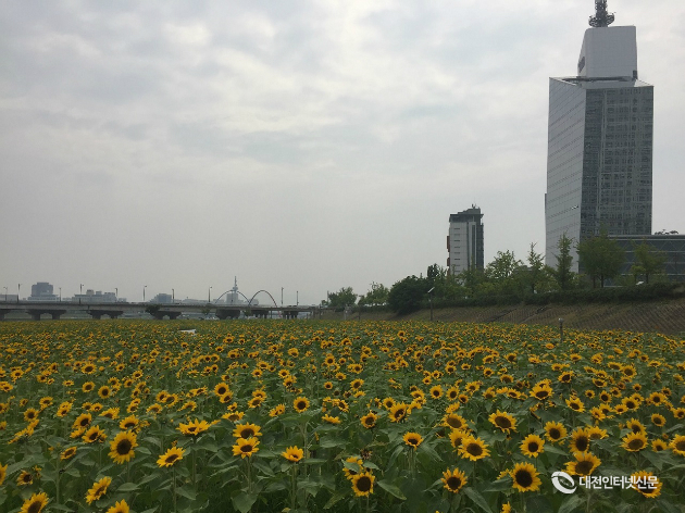대전광역시(시장 권선택)가 갑천 둔산대교 일원 하천둔치 약10,000㎡에 고급종 해바라기 17만 본을 식재해 시민들이 꽃과 함께 물을 보며 자연을 느낄 수 있도록 특색 있고 차별화된 꽃 단지로 조성했다고 밝혔다.