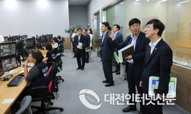 김 차관은, 대전 스마트시티 센터 사업추진 현황 등을 보고받으면서 “동 센터는 작년 7월, 스마트 시티 안전망 구축사업(112‧119와 U-City 센터를 연계하는 등 스마트시티 기술을 활용하여 재난구호‧범죄예방‧사회적 약자 지원 등 5대 국민 안전 서비스를 구축)을 전국 최초로 시범 도입하여 매우 성공적으로 운영 중에 있는 곳”이라고 관계자들의 노고를 격려하였다.