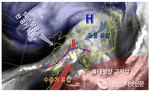 16일(토) 장마전선의 영향으로 대전·세종·충남지방 비가내리겠으며 특히 새벽에서 오전까지 강수량이 집중적으로 많겠다고 기상청은 밝혔다.