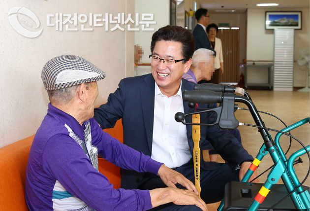 허태정 유성구청장은 6일 오후 민족 고유의 추석 명절을 맞이해 선우치매센터를 방문해 위문품을 전달하고 입소자들을 위로했다.