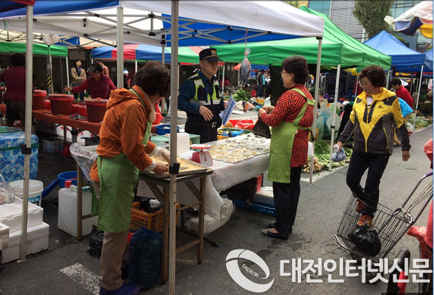 대전중부경찰서(서장 태경환)는, 11일 유천동에서 열린 5일장에 방문, 상인들과 시장을 찾은 시민을 상대로 불량식품 근절 활동을 실시했다.