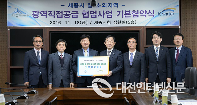 세종특별자치시(시장 이춘희)가 18일 시청 집현실(본관 5층)에서 K-water(수자원공사)와 물 소외지역에 상수도를 직접 공급하기 위한 협약을 맺었다.