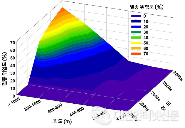 지구온난화 영향으로 기후변화에 민감한 생물이 고산지역으로 점차 이동하고 있으며 고도가 높은 지역에서 멸종되는 종(種)이 많아 향후 종 다양성이 줄어들 것이라는 연구결과가 나왔다.