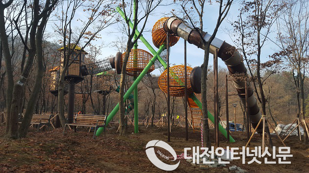 `모험놀이터´는 약 500㎡의 면적으로 나무 상부에 나무집을 조성하고 나무집 사이사이를 이동할 수 있는 흔들다리를 연결하여 숲 속 놀이터의 색다른 재미를 느낄 수 있게 하였으며, 미끄럼틀, 우드칩놀이장 등 다양한 놀이시설을 배치하였다.