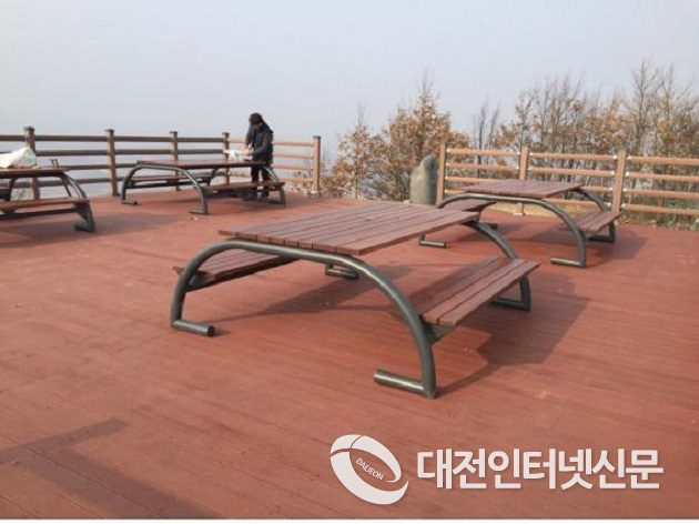 특히, 원수산 정상부는 면적이 협소하여 전망을 즐기거나 쉴 공간이 부족한 점을 개선하기 위해, 다수의 등산객이 머무를 수 있도록 약 100㎡ 규모의 친환경 `목재전망데크´와 4개소의 휴게탁자(피크닉테이블)를 설치하여 도시조망을 즐기며 담소를 나눌 수 있는 휴식공간으로 조성했다.