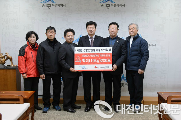 한국쌀전업농세종시연합회(회장 김명성)회원들이 23일 사회복지공동모금회에 백미(10kg) 200포를 기탁했다.