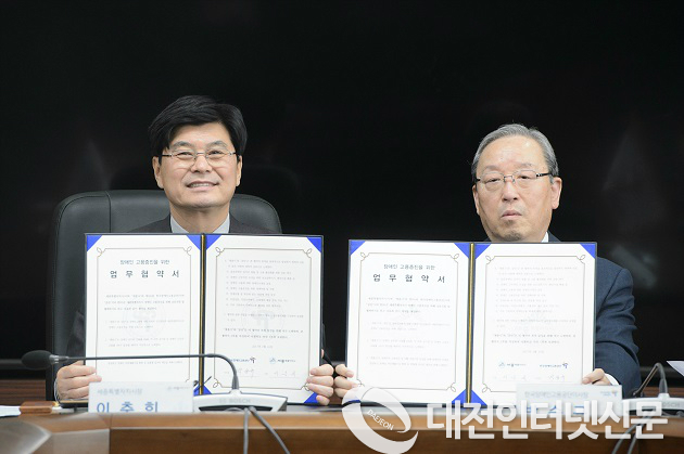 이춘희 시장과 박승규 이사장은 16일 오전 시청에서 장애인 고용증진 협약을 체결하고 시의 장애인 공무원 고용률 5%와 시 산하 공기업 등 근로자 고용률 5%를 달성할 때까지 지속적으로 노력하기로 했다.