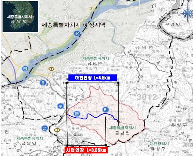 최근 전 세계적으로 빈번히 발생하고 있는 이상기후 및 이에 따른 자연재해는 대규모 인명 및 사회 경제적 피해를 가저오며 그 규모와 피해액도 지속적으로 증가하는 추세에 따라 시민의 안전과 홍수에 대비하기 위하여 세종특별자치시(시장 이춘희)가 국토교통부의 국비 50%를 지원받아 지방하천(금천, 용수천, 문주천, 월하천, 내창천, 대교천) 정비사업을 추진 중이다.