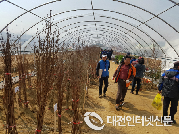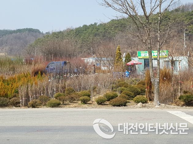 ▲ 풍성하지 못한 판매용 묘목과 생산자 표기가없는 묘목이 어우러진 판매장에 듬성듬성 방문객이 보이고 있다.