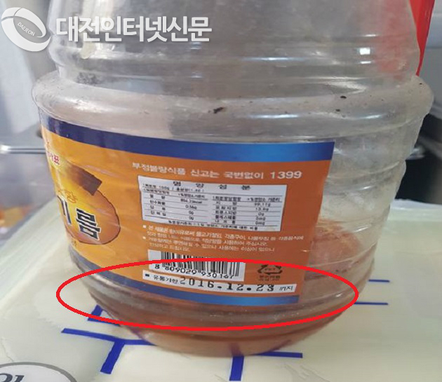 ▲ 노걸대감자탕 일죽지점 (경기 안성시) 유통기한경과제품보관-들기름(16.12.23)사진-식약처