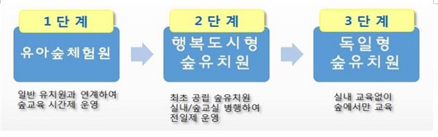 이를 위해 산림청과 행복청은 관련 법령에 따라 행정적·제도적 지원을 하고 LH는 유아숲체험원을 적기에 조성하며, 산림복지진흥원은 다양한 숲교육 프로그램 제공과 운영을 총괄한다.