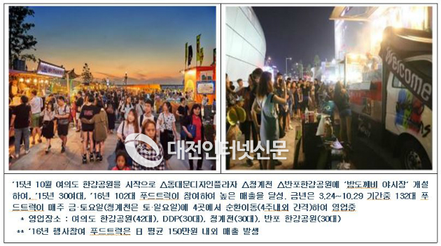 올해 3년째를 맞는 서울시 주관 `서울 밤도깨비 축제´는 지역축제와 문화공연, 푸드트럭이 결합하여 지역 명물로 자리 잡고 있으며 한국도로공사가 운영하는 고속도로 졸음쉼터(14개소) 또한 성공적인 사업모델로 평가받고 있다. 청년 창업자에게 저렴하게 푸드트럭을 임대하여 부담을 줄였고, 안정적 매출로 자립 기반이 되고 있다.