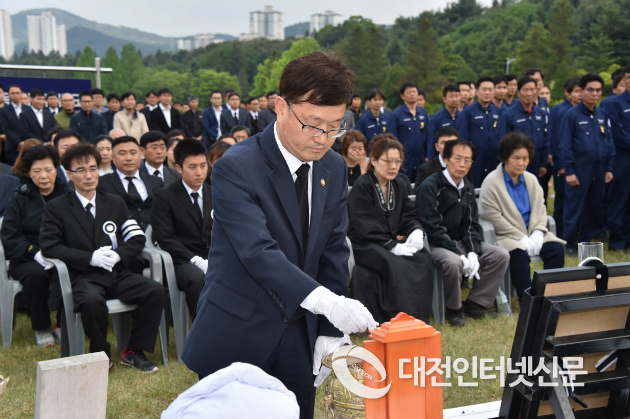 지난 6일 발생된 “강원도 삼척 도계읍 산불진화에 투입되어 산불진화 중 대형헬기 익산 608호가 8일 11시 48분경 진화작업 중 고압선에 걸려 강원도 삼척시 도계읍 고사리 하천변 일원에 비상착륙을 시도하던 중 사망한 조병준 정비사에 대한 안장식이 10일 대전현충원에서 거행 되었다.