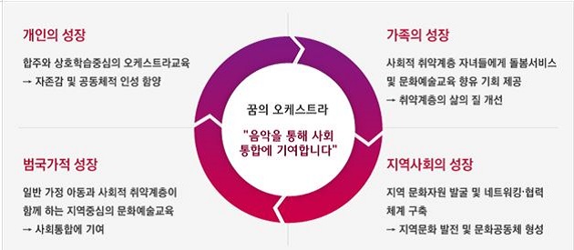 “꿈의오케스트라”는 아동‧청소년이 상호학습과 협력을 중심에 두는 오케스트라 합주 활동을 통해 긍정적 자존감과 공동체적 인성을 갖춰 밝고 건강하게 성장할 수 있도록 돕는 문화예술 프로그램으로 `상호 학습´과 `협력´을 이끌어내는 꿈의 오케스트라 음악교육을 통해 아동․청소년의 건강하고 다면적인 성장을 유도하고 한편 단원의 건강한 성장과 지역 사회와의 공유를 통해 가족 및 지역사회의 변화와 더 나아가 사회 통합에 기여하는 것을 목표로 하고 있다.