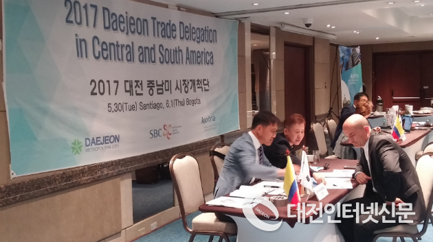 | ▲ 2017 대전 중남미 시장개척단이 산티아고와 보고타에 파견되어 수출 상담을 했다.사진제공-대전시청 |