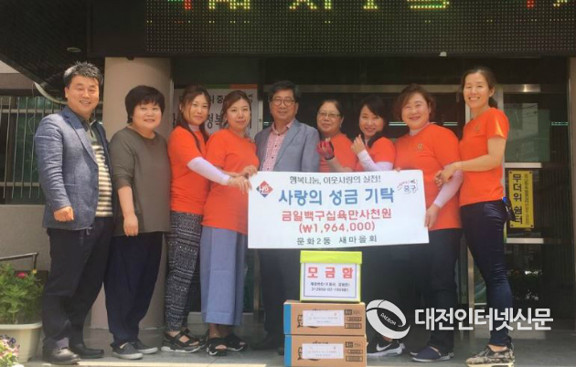 대전 중구 문화2동 새마을회(회장 김용만)는 21일 일일찻집을 운영해 마련한 수익금 전액인 196만원을 미혼모자가족 복지시설인 대전클로버에 전달했다.