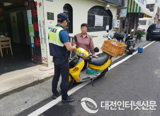 대전동부경찰서 대전역지구대(대장 최덕규)는 7. 17.(월) 14:00경 최근 날씨가 더워지면서 안전모미착용 오토바이 운전을 예방하기 위해 관내 이륜차 배달업소를 방문하여 이륜차 교통법규 위반사례 및 정확한 안전모 착용방법을 등을 홍보했다.