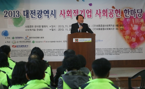 염홍철 시장은 인사말을 통해서 “시민들이 대전을 사회적자본이 충만한 도시로 만들어 가고 있다”고 강조하면서 “오늘 사회적기업 대표들이 그 중심에 서서 사회공헌을 다짐한 것은 기폭제가 될 것으로 기대된다”고 덧붙였다.