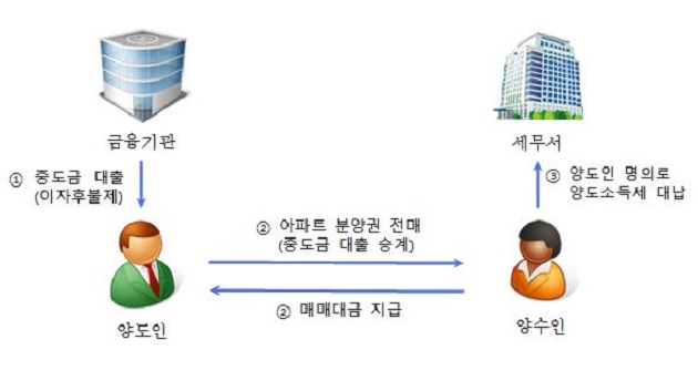 [사례2] ´16.10. 양도인은 양도소득세를 양수인이 부담하는 조건으로 프리미엄 00백만 원에 아파트 분양권을 전매하고 중도금 대출(이자후불조건)을 양수인에게 승계하고 양도인은 아파트 분양권 양도시점까지 발생한 중도금 대출이자 및 양수인이 대납한 양도소득세를 양도가액에서 누락한 혐의. <양도소득세 00백만 원 추징>