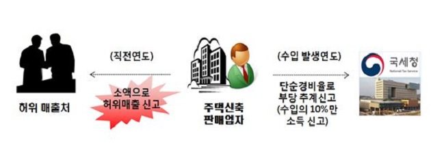 [사례8] ○○○○은 집값 급등지역에서 탈출한 전세난민이 몰리는 수도권에서 빌라 등을 신축판매하여 고소득을 올리는 주택신축판매업자로 신축빌라를 판매하여 고액수입이 발생하는 연도의 직전연도에 소액매출이 있었던 것처럼 허위신고를 하고 주택판매 사업연도에는 수입금액의 약 10%만 과세대상으로 간주하는 단순경비율을 적용받는 방법으로 소득금액 축소신고.<전년도 소액매출의 허위신고 여부를 조사하여 편법 축소소득에 대해 소득세 OO억 원 추징>