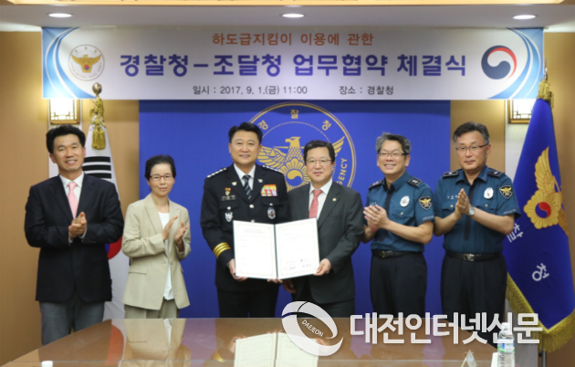 조달청(청장 박춘섭)은 9월 1일 오전 서울특별시 서대문구 소재 경찰청 본청에서 경찰청(청장 이철성)과 하도급지킴이 이용에 관한 업무협약(MOU)을 체결했다.