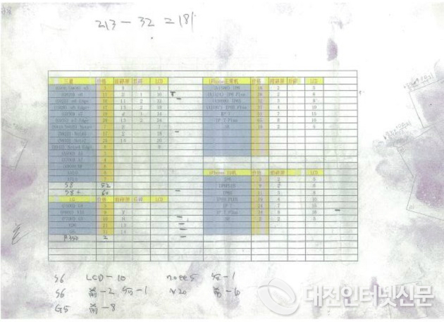 ▲경찰에 압수된 분실폰 거래내역(사진-대전청)