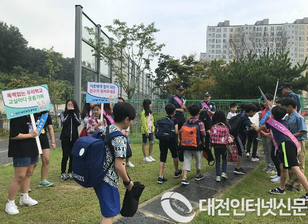 대전유성경찰서 여성청소년계에서는 7일 새미래초등학교에서 신학기 친구사랑 주간을 맞아 학생, 교사 등 30여명이 참석한 가운데 학교폭력예방 안전 활동을 시행하였다.