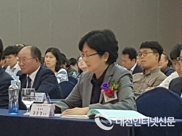 김은경 환경부장관과 이시종 충북지사, 이경용 금강유역환경청장이 토론을 경청하고 있다. [사진-대전인터넷신문]