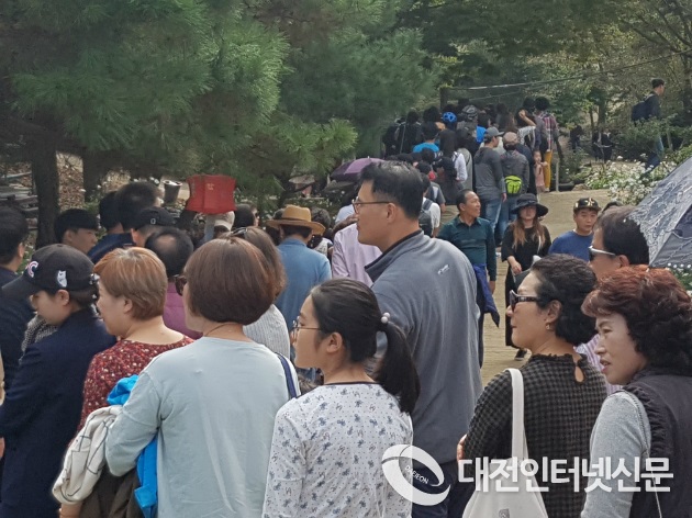 멀리는 5㎞~6㎞밖 길가에 주차를 하고 구절초를 보기위한 왕복 10여㎞거리도 마다하고 영평사를 찾은 시민들은 협소한 진입로로 인하여 오가는 차량과 번갈아가며 통행을 하고 없는 화장실을 찾아 발을 동동구르며 주최측과 집행부를 원망하며 구절초를 향해 무거운 발걸음을 옮겼다.