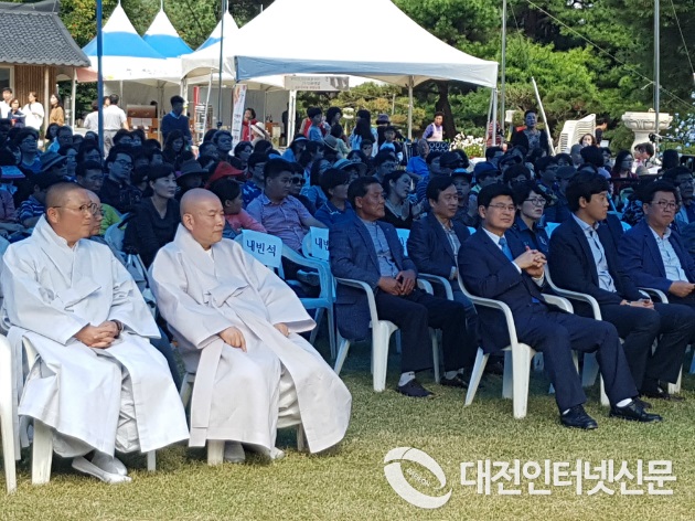 구절초 국수 공양을 위한 행렬이 약 70미터의 꼬리를 물며....[사진-대전인터넷신문]