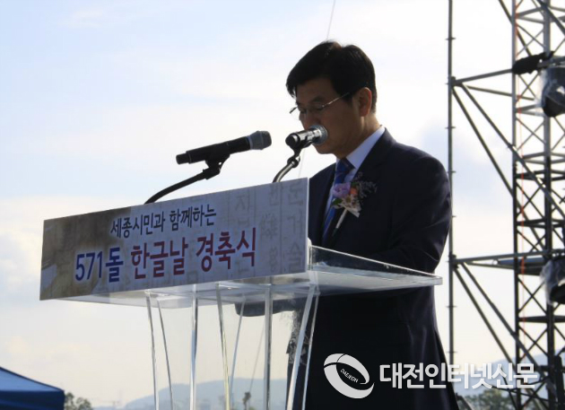 세종특별자치시(시장 이춘희)가 제5회 세종축제와 연계한 한글날 경축식을 축제가 열리는 호수공원 중앙무대에서 9일 개최 하였다.