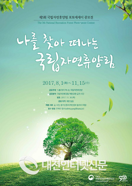 응모 방법은 참가 신청서와 글 및 사진을 11월 15일까지 전자우편(withhuyang@korea.kr)으로 제출하면 된다. 참가 신청서는 국립자연휴양림관리소 누리집(http://www.huyang.go.kr) 공지사항에서 내려 받을 수 있다.