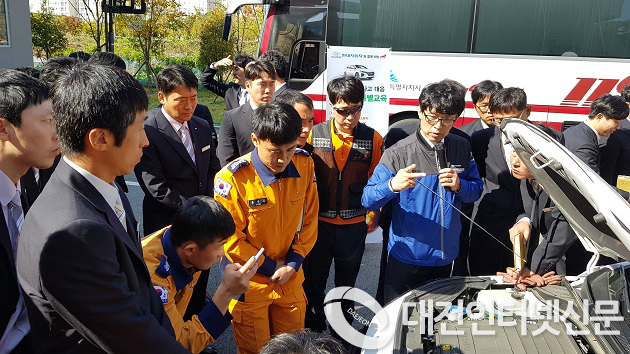 전기자동차와 하이브리드자동차의 증가 추세에 따라 마련된 이날 교육에는 전기자동차 전문 강사(현대자동차 소속)를 초빙하여 고압전류가 발생되는 전기자동차의 구조와 특징, 사고차량 대처법 등에 대한 이론교육과 아이오닉 전기자동차를 이용한 실습교육을 진행했다.