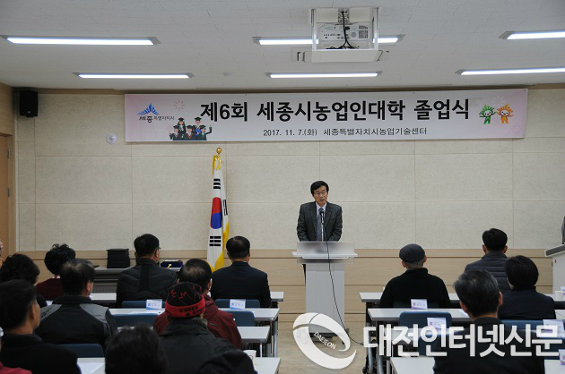 세종특별자치시농업기술센터(소장 신은주)는 7일 농업기술센터 교육관에서 제6회 세종시농업인대학 졸업식을 가졌다.