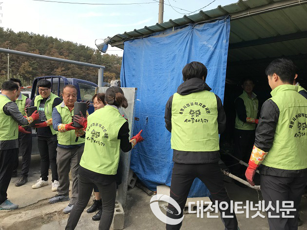 세종특별자치시(시장 이춘희) 건축과 직원들은 7일 전동면 송정리의 기초생활수급 가구를 방문, 사랑의 연탄 330장을 배달하고, 청소 등 자원봉사활동을 펼쳤다.