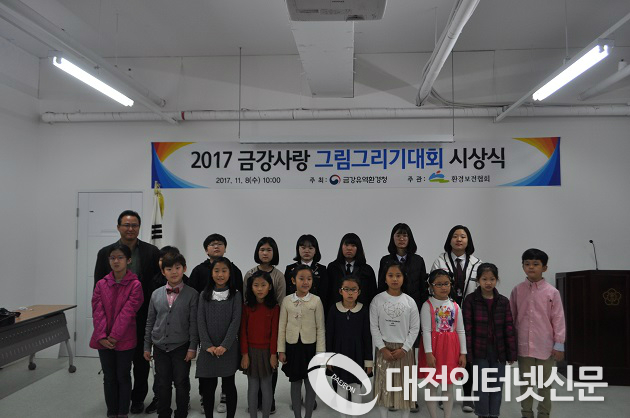 금강유역환경청 이경용 청장은 11.8(수) 금강유역환경청 대회의실에서 2017 금강사랑 그림그리기 대회 시상식을 개최했다. 이 날 시상식에서는 대상에 금성초등학교 홍정민 학생 등 25명에 대하여 상장과 상금을 수여하였다.