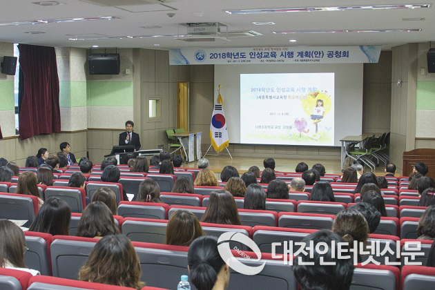 세종특별자치시교육청(교육감 최교진. 이하 세종시교육청)은 9일(목) 오후 3시부터 어진중학교 1층 시청각실에서 유·초·중·고 교원, 학부모, 시민 등 약 150여 명이 참석한 가운데 「2018학년도 인성교육 시행 계획(안) 공청회」를 개최했다.