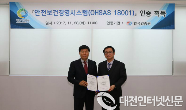 세종시설공단(이사장 신인섭) 은하수공원은 28일 국제안전보건경영시스템(OHSAS 18001) 인증기관인 한국인증원으로부터 인증서를 수여 받고 현판식을 가졌다.