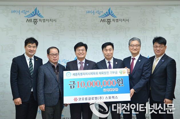 코오롱글로벌(주) 스포렉스(송승회 본부장)는 14일 세종시청에 방문해 세종체육발전에 사용해 달라며 체육발전기부금을 전달했다고 밝혔다.