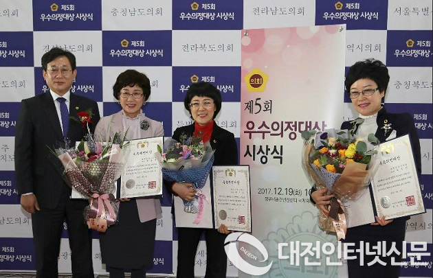 대전시의회 구미경(비례대표, 더불어민주당)․박상숙(비례대표, 더불어민주당)․최선희(비례대표, 자유한국당) 의원이 19일 정부세종컨벤션센터 국제회의장에서 열린 「제5회 우수의정대상 시상식」에서 지역주민의 삶의 질 향상과 지방자치 발전에 기여한 공을 인정 받아 `우수의정 대상´을 수상했다.