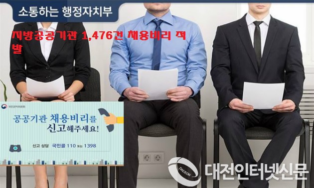 이는 “공공기관의 채용비리를 근절하자”는 대통령 지시(10.23.) 후속 조치로, 지방공공기관의 채용비리를 점검한 결과 1,476건(475개 기관)에 달하는 채용비리가 적발되었다.