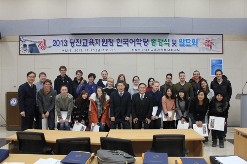 지난 한 해 동안 매주 1회 2시간씩 진행된 당진교육지원청 한국어학당에는 5개국(미국, 영국, 캐나다, 남아공, 중국)에서 온 원어민교사가 참여하여 부단한 노력 끝에 유종의 미를 거두었다.