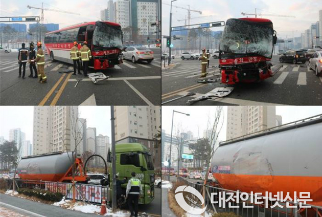 15일 .(월) 오전7시53분경 종촌동 가재마을 8단지 앞 사거리에서 남양유업 출퇴근 버스와 탱크로리가 충돌하여 10명의 부상자가 발생하였다.