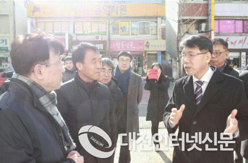 | ▲ 도시재생 뉴딜사업 선정지 중촌동을 돌아보는 이재관 대전시장 권한대행.사진제공-대전시청 |