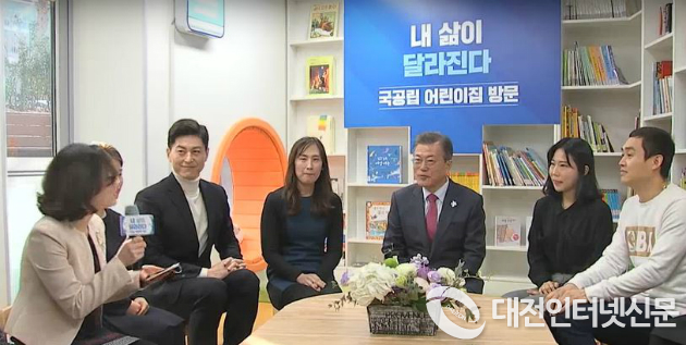 문 대통령은 학부모·보육교사와의 간담회에서 국공립어린이집 이용경험, 근무환경 및 건의사항 등을 경청하고 이 자리에서 참석자들은 “걸어서 등·하원이 가능한 국공립어린이집이 있어서 좋고, 함께 어울리는 놀이문화, 놀이공간이 있어서 좋다”, “믿고 맡길 수 있는 교사들이 있어서 좋다”, “장애아와 비장애아가 함께 하는 통합어린이집이어서 존중과 배려를 배울 수 있어서 좋다”, “민간어린이집의 보육환경도 좋아질 수 있도록 지원해 달라”고 의견을 제시하였다.