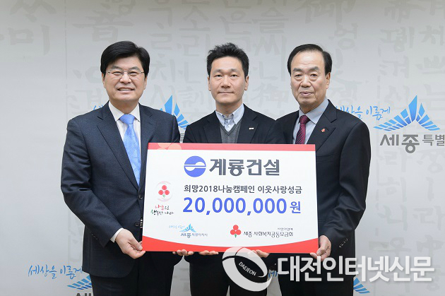 계룡건설은 25일 세종사회복지공동모금회에 2,000만원의 성금을 기탁했다.