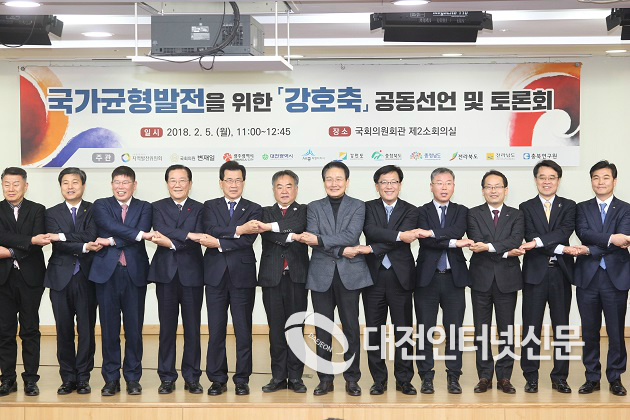 이날 토론회에 앞서 세종시를 비롯한 8개 시·도는 공동건의문 발표를 통해 헌법적 가치를 수호하고, 국토의 효율적 활용을 위해 상대적으로 낙후된 강원-충청-호남을 잇는 강호축을 개발해야한다고 강조했다.