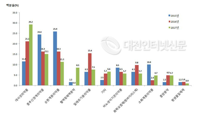 | ▲ 최근 3년간 치료영역별 제네릭의약품 개발 현황(출처-식약처) |